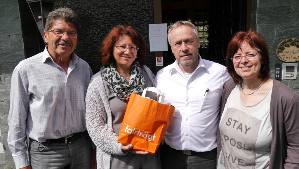 Glückwünsche für Lothar Hölzgen. Foto von links: Bruno Götz, Jacqueline Würz, Lothar Hölzgen mit Ehefrau Conny. (Foto Hartmut Bock)