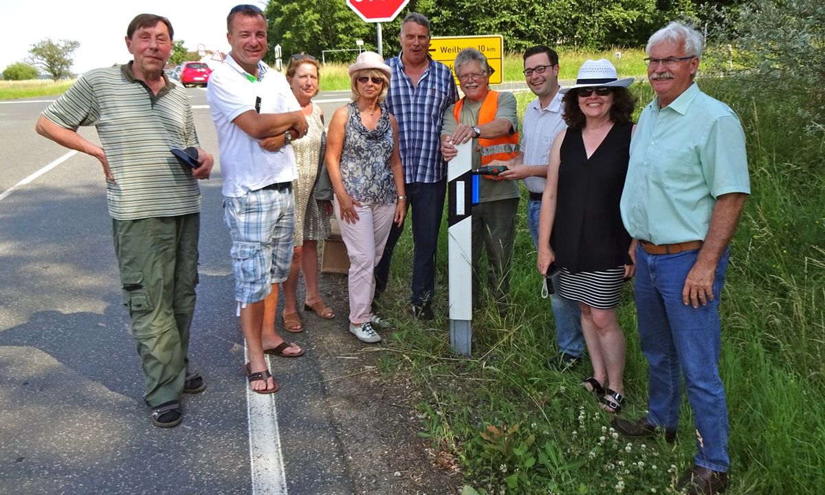 Die Kreistagsfraktion beim Anbringen eines Wildschutzreflektors ©SPD-Kreistagsfraktion LM-WEL
