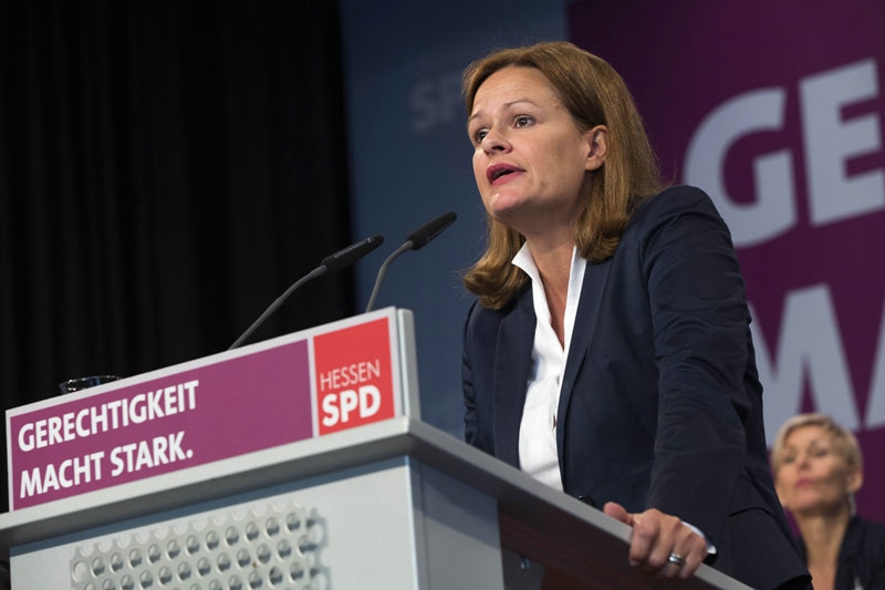 Nancy Faeser (44) stammt aus einer sozialdemokratischen Familie aus Duisburg. Sie ist seit ihrem 18. Lebensjahr für die SPD aktiv und ist neben ihren Funktionen in der hessischen SPD-Landtagsfraktion und dem SPD-Landesverband Schwalbacher Ortsvereins- und Unterbezirksvorsitzende der SPD Main-Taunus und sitzt im Schwalbacher Stadtparlament und im Kreistag des Main-Taunus-Kreises. Faeser arbeitet als Juristin in einer Frankfurter Wirtschaftskanzlei.