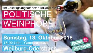 Davon, dass Politik und Genuss hervorragend zusammenpassen, können Sie sich bei der Politischen Weinprobe mit dem heimischen SPD Landtagsabgeordneten Tobias Eckert überzeugen.