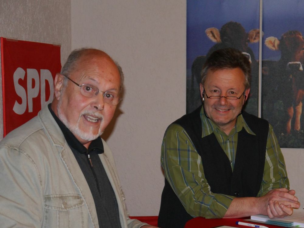 Schlaue Fragen und kluge Antworten - Heinz-Günther Mandler (li) und Matthias Ahäuser (re) moderierten Kommunalpolitik und Flüchtlingsarbeit waren die beherrschenden Themen eines Diskussionsabends der Kubacher Sozialdemokraten. Wie funktioniert Politik, so das Thema?